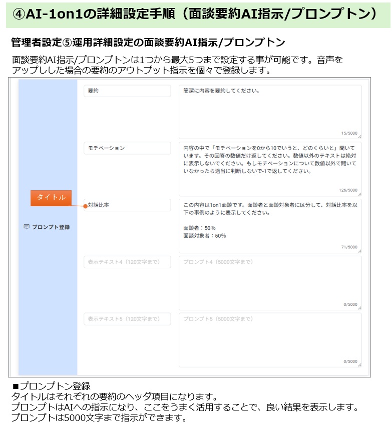 ④AI-1on1の詳細設定手順(面談要約AI指示プロンプトン)