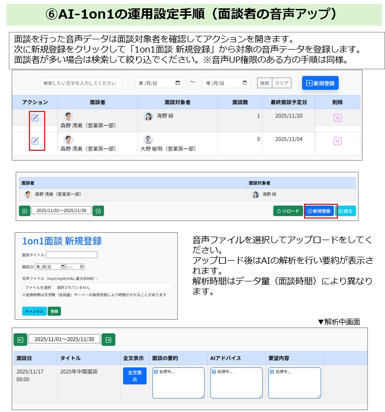 ⑥AI-1on1の運用設定手順(面談者の音声アップ)